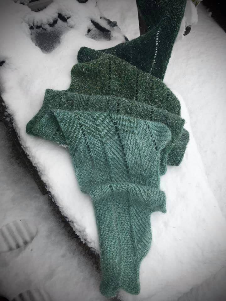 Chevrollelogram von Westknits aus der Wolle von einem Shetland x Waldschaf-Mix. Sehr flauschig. Handgesponnen + -gefärbt mit einem Verlauf von mint bis dunkelgrün. 180 € inkl. Porto in Deutschland.
