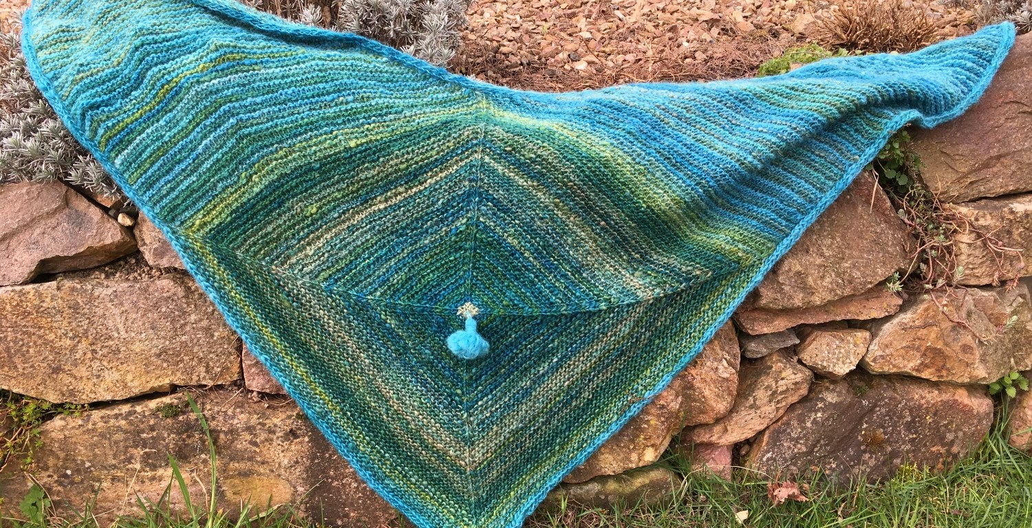 Vor einigen Wochen kam ein herrliches Wollpaket von Ricarda hier an. Darin auch eine zunächst gut, aber doch recht normal aussehende Longwool, was wohl eine Kreuzung zwischen Milchschaf und Wensleydale war. Ziemlich schnell war aus dem Wollweiß wunderbare Wolle in Meeresfarben geworden und als Single versponnen. Ich erinnerte mich an ein Tuch, dass ich mal aus Texelwolle gestrickt hatte. Da mir das Prinzip in einer zunächst gut aussehenden Anleitung nicht zusagte, habe ich dann nach eigenem Gutdünken gestrickt. Erfolgreich! – Alles war schon eine ganze Weile her. Jetzt ging es daran, mein Gestrick von damals nachzuvollziehen und auch mal aufzuschreiben.
