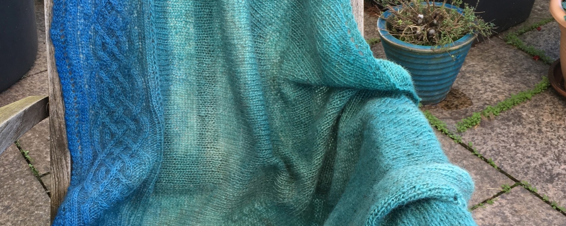 Das Celtic Myths-Tuch habe ich vor über einem Jahr gestrickt. Es ist aus Coburger Fuchs und war ursprünglich naturfarben. Fein, edel…… aber auch irgendwie langweilig. Gestern habe ich den Mut gehabt, diesem Teil Farbe zu geben, auch auf das Risiko hin, dass ich etliche hundert Stunden nun versaue. Ich habe mir überlegt, wie ich einen Farbverlauf hinbekomme, und siehe da, es hat geklappt. So finde ich dieses Tuch ganz herrlich. Wer dieses Tuch stricken möchte: Die Anleitung gibt es auf Ravelry „Celtic Myths fingering“