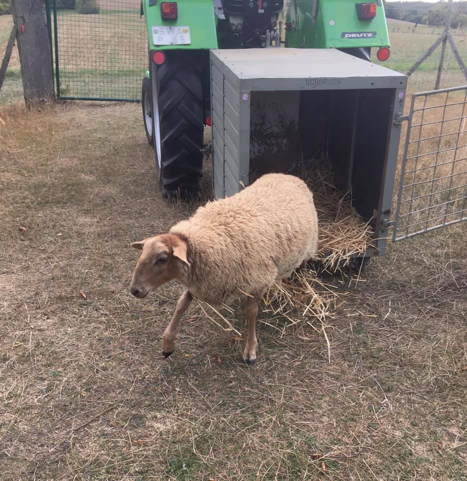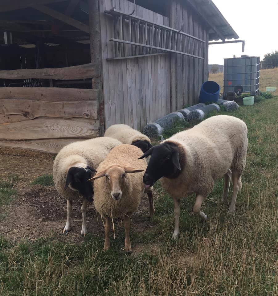 Moritz ist ein Coburger Fuchs Hammel mit ein paar Suffolk-Genen. Er wurde Anfang Mai geboren, und durfte inzwischen hier bei der kleinen Heidschnucken + Rhönschaf + Ziegenherde einziehen. Diese Herde von meinen Hausherren betreue ich seit einiger Zeit mit, und jetzt durfte ein eigenes Schaf mit normaler Wolle dazu. Da Moritz weder bei den Heidschnucken, noch bei den Rhönschafen für Nachwuchs sorgen sollte, wurde er recht zeitig kastriert. Er hat so ein ganz entspanntes Leben und muß mir nur 1 x pro Jahr seine Wolle abgeben. Er hat Glück gehabt, denn normalerweise wäre er wohl irgendwann beim Metzger gelandet, denn es gibt jedes Jahr mehr junge Böcke, als für die Nachzucht gebraucht werden.