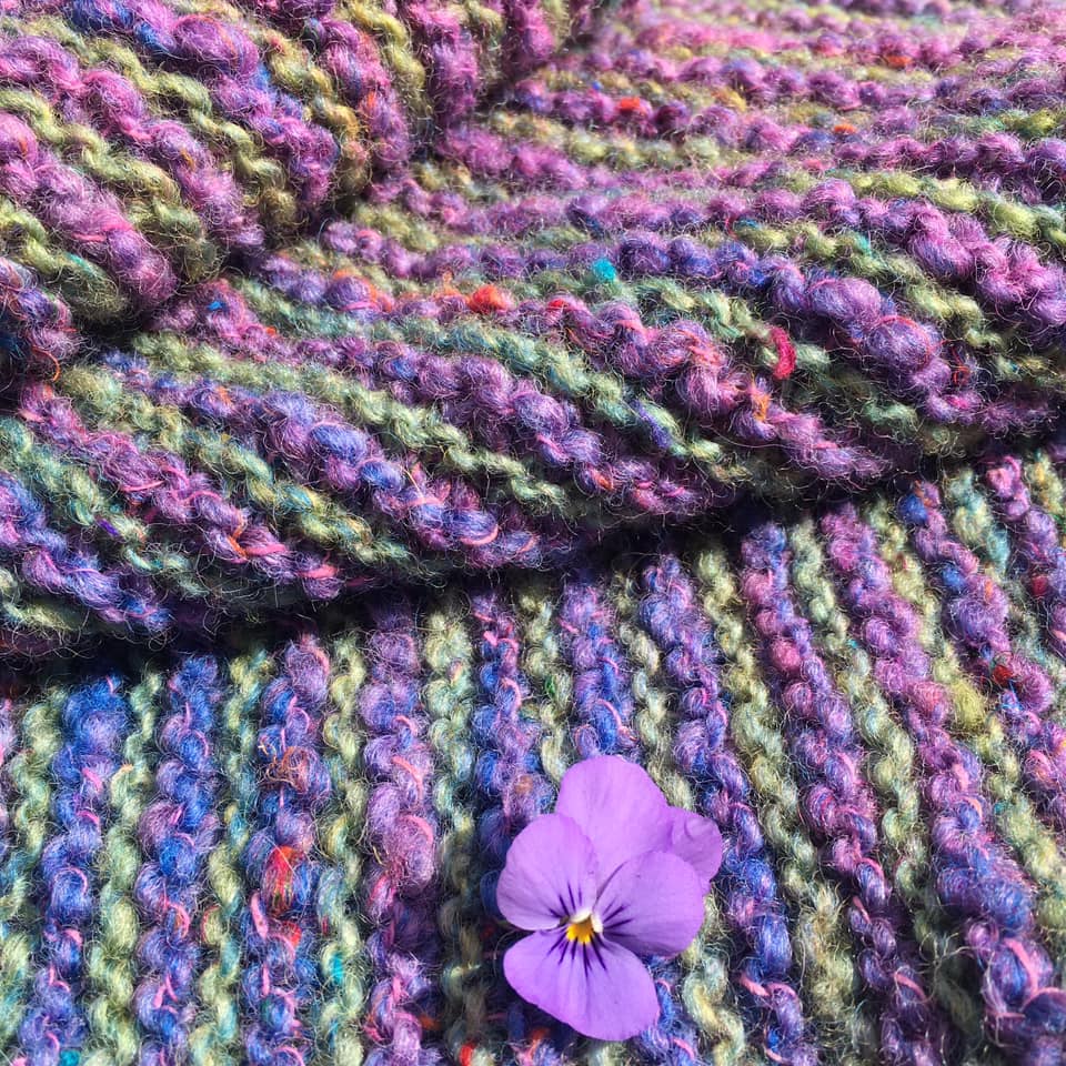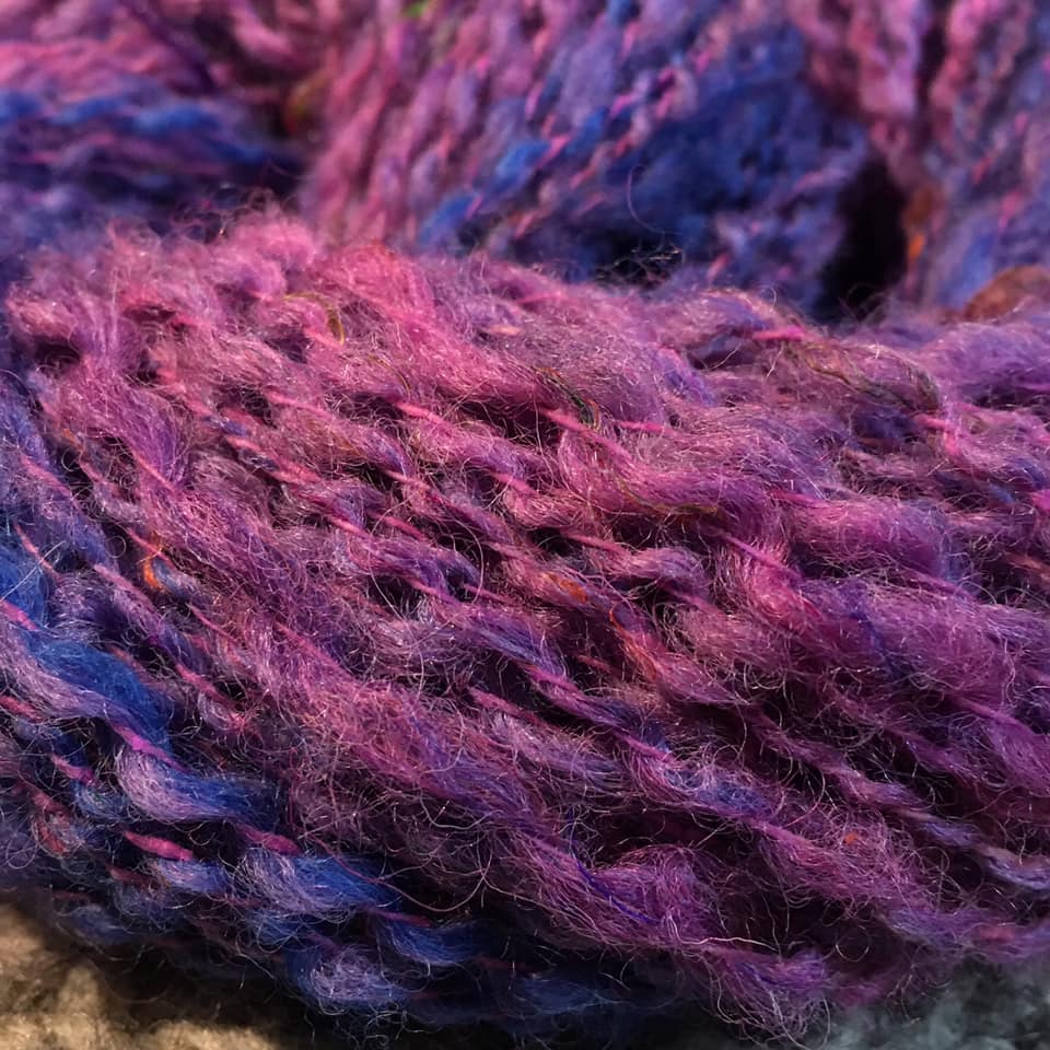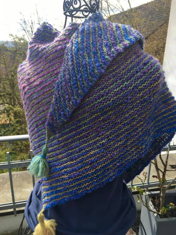 Ein neues Tuch ist fertig geworden. Wollspenderin war ein Cheviot-Jährling aus Ostfriesland. Natürlich wieder komplett von mir verarbeitet + gefärbt. Das Garn ist teilweise mit Sariseide gemischt und spiralgezwirnt, was einen Bouclé-effekt gibt.