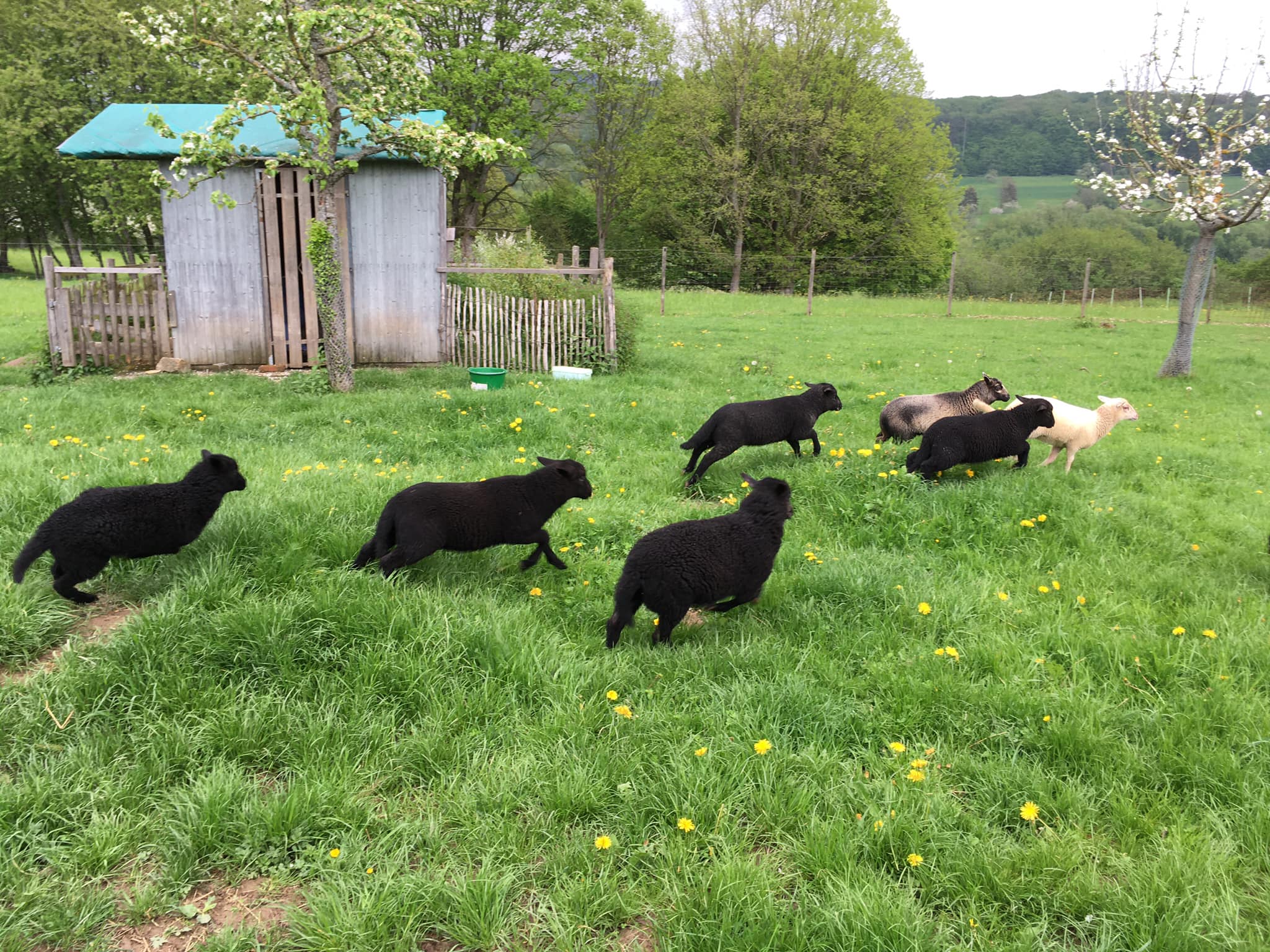 24 Lämmer sind es in diesem Jahr geworden, und alle gedeihen prächtig. Alle konnten wir in diesem Jahr rechtzeigig gegen Breiniere impfen. Die Böckchen sind kastriert, denn so können sie viel länger bei der Herde bleiben und müssen nicht im Sommer schon getrennt werden, weil sie sich fortpflanzen möchten. Demnächst gibt es die erste Wurmkur. Das Gras wächst reichlich, die Mütter haben genug Milch. Das sind die besten Voraussetzungen.