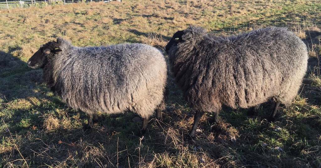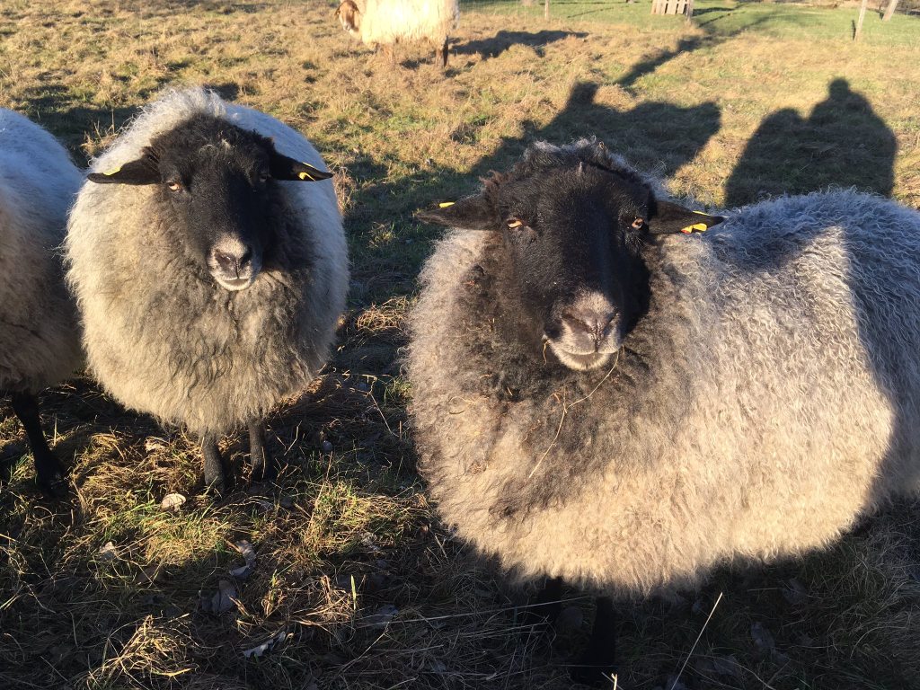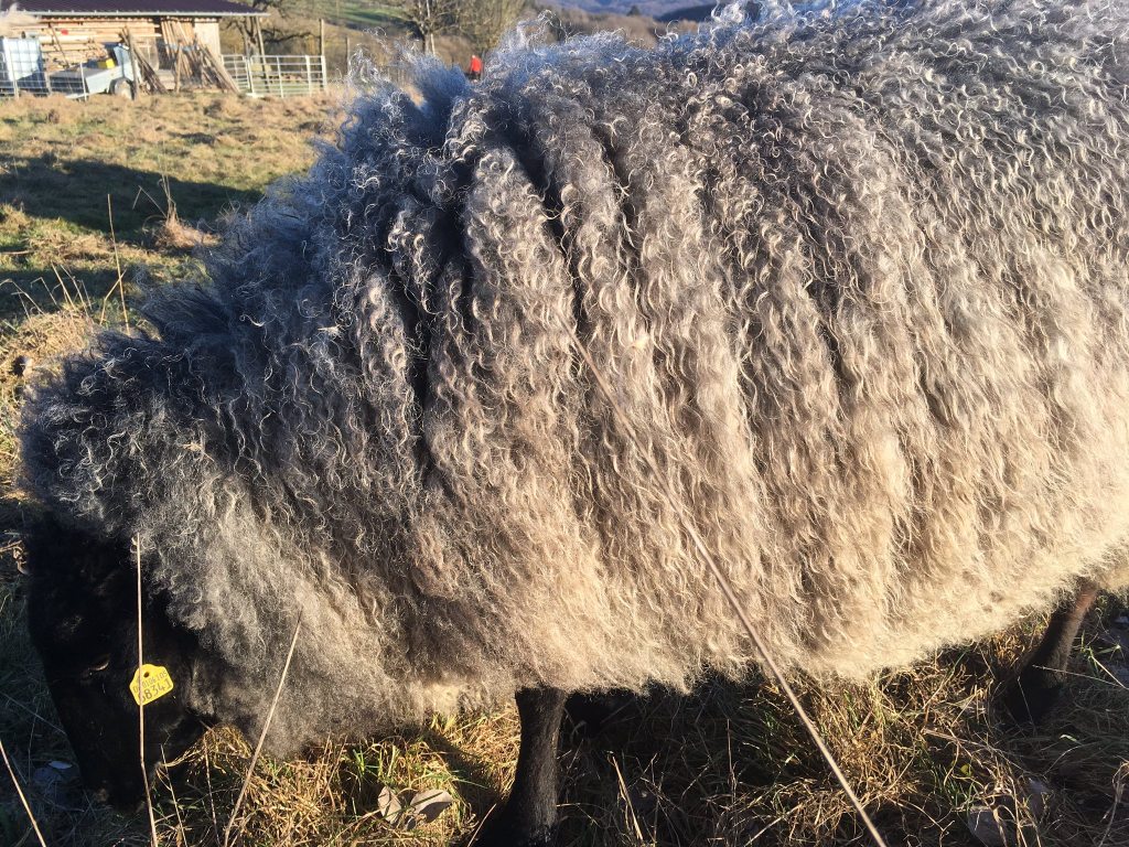 …also unsere rauhwolligen Pommernschafe sind einfach toll. Sie sind robust und pflegeleicht und haben zudem eine wunderbare Wolle, die gar nicht immer so rauh ist, wie der Name vermuten läßt. Es war ursprünglich ein sog. 3-Nutzen-Schaf (Wolle, Milch, Fleisch), dass eher im Norden (Ostseeküste) beheimatet, und auch an die dortigen Verhältnisse (Vegetation, Wetter) gut angepasst ist. Da es Landschafe und keine Hochleistungsschafe sind, waren sie irgendwann fast ausgestorben. Es gab nur noch gut 40 Schafe, aus denen zum Glück wieder ein guter Bestand herausgezüchtet wurde. Dies ist der Interessengemeinschaft Rauhwollige Pommern und vielen Herdbuchzüchtern zu verdanken. Ich habe mich vor Jahren in diese Schafe verliebt. Es fing an mit den ersten Rohwollvliesen, die ich im Weserbergland bei den Höllers erwerben konnte. Bald mußten auch wenigstens 2 Pommernmädels und ein Bock in unsere kleine Herde im Taunus einziehen. Mittlerweile sind es 5 nette Pommernmädels in unterschiedlichen Farbschlägen von grau, blau-grau und blau (was anthrazit ist),